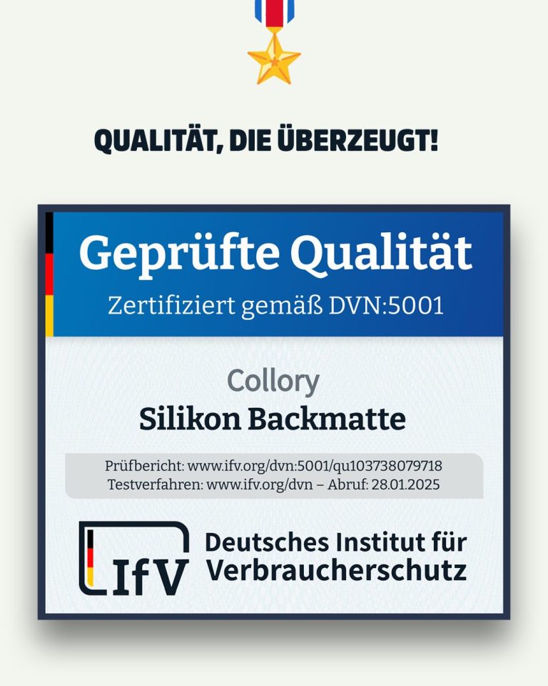 Für mich gehören die hochwertigen Backmatten von collory zur Grundausstattung. Ich backe fast alle Hundeleckerlis mit diesen Matten und du kannst sie auch regelmäßig in meinen Videos sehen. Im Gegensatz zu günstigen Backmatten, die häufig nicht getempert (ausgebrannt) sind oder die Schadstoffe enthalten (die beim Backen in die Leckerchen übergehen können), sind die collory-Matten 100 % lebensmittelecht, BPA‑frei und geruchs- sowie geschmacksneutral – so entstehen wirklich gesunde Snacks!